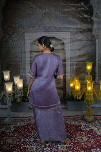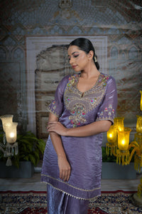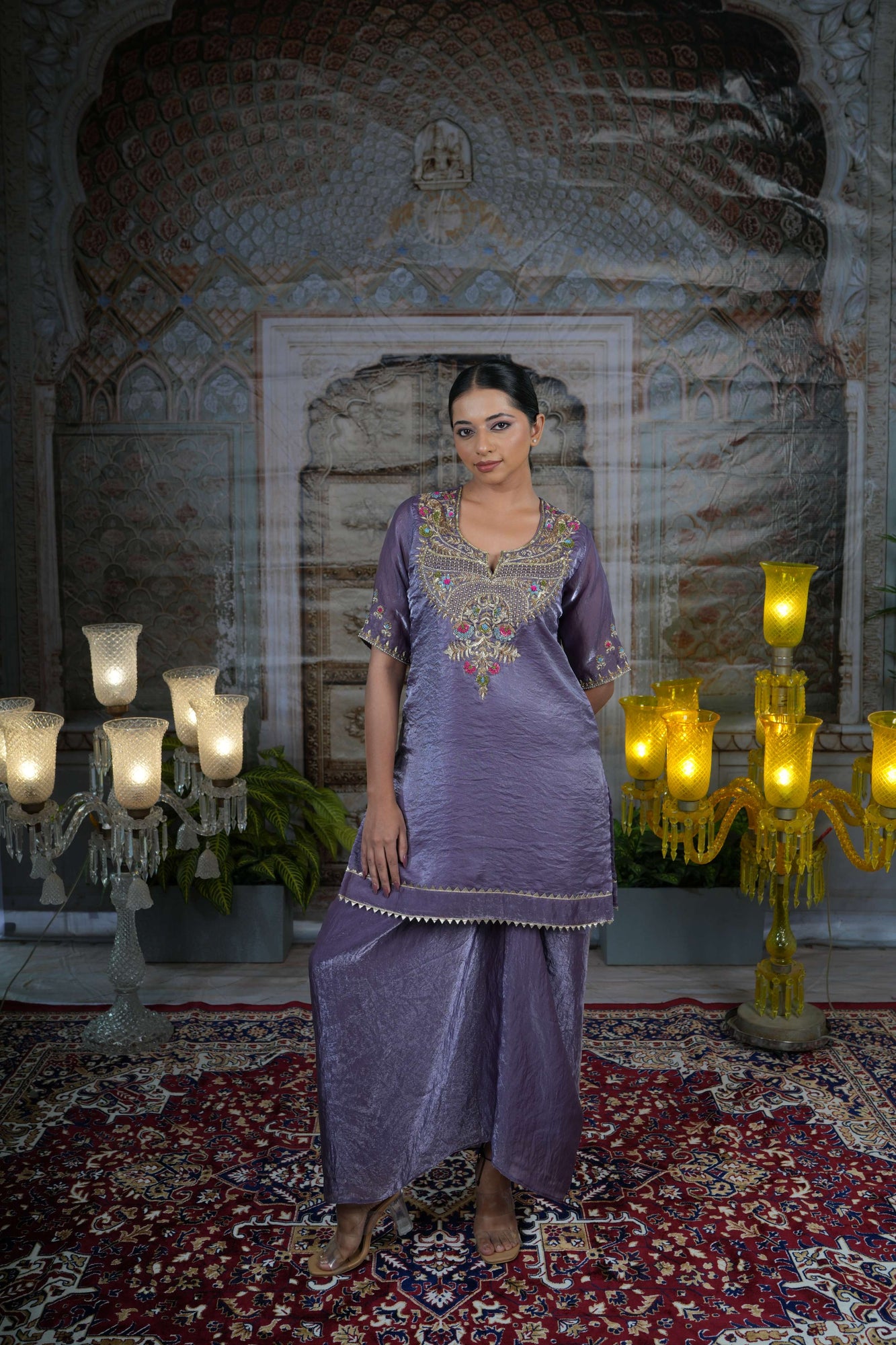 HomeAll Silk tissue purple intricate embroidery kurta set